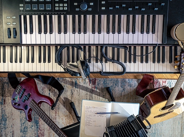 Learn to play piano, guitar, or tabla and use them in your music. Build skills that help you create and perform confidently.